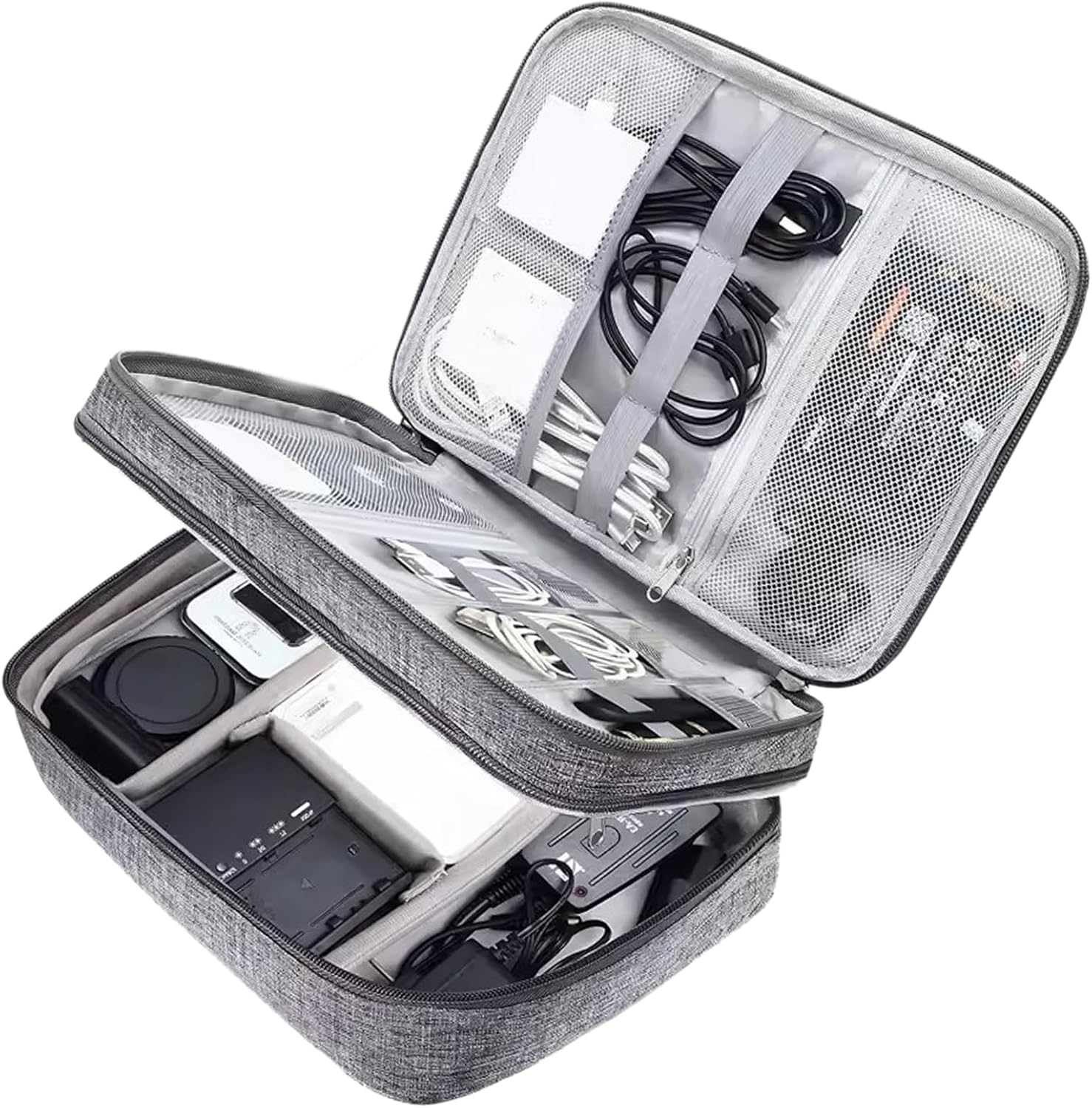 Keep your electronic accessories organized and protected with this practical double-layer travel organizer bag.