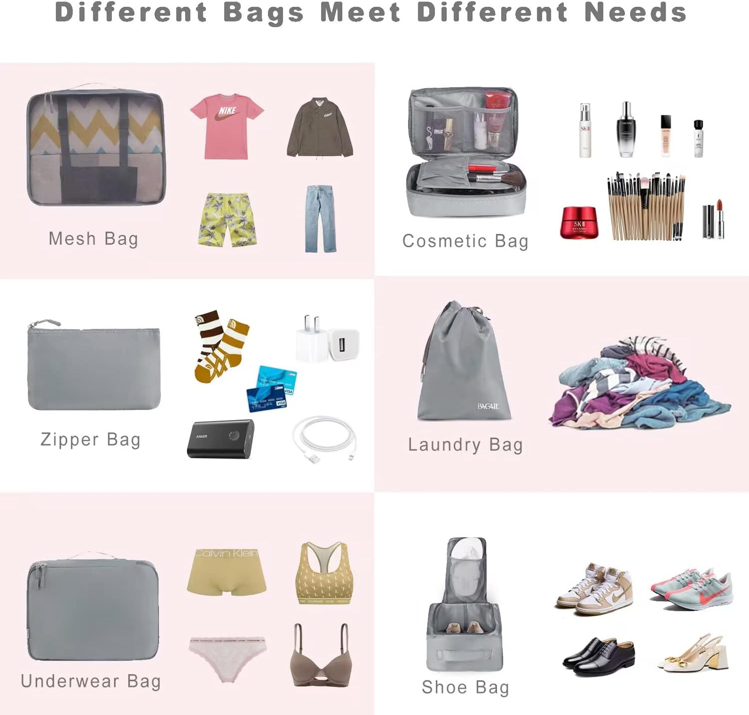 Be the first to review “BAGAIL 8 Set Packing Cubes Luggage Packing Organizers for Travel Accessories-Pewter Color”