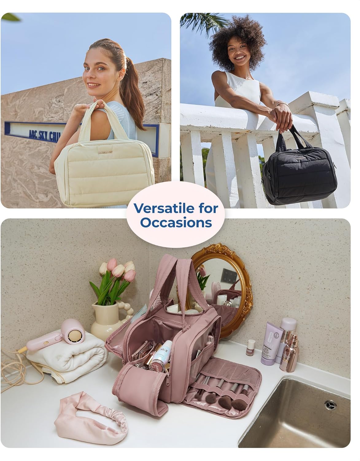 Ultra Light and Soft Materials: Made of soft and luxurious Taslan fabric. This puffer toiletry bag feels like cotton candy, giving people a relaxed and comfortable atmosphere. Also a reliable, functional, and fashionable makeup bag. Efinitely an ideal Christmas gift for yourself, your family, and your friend