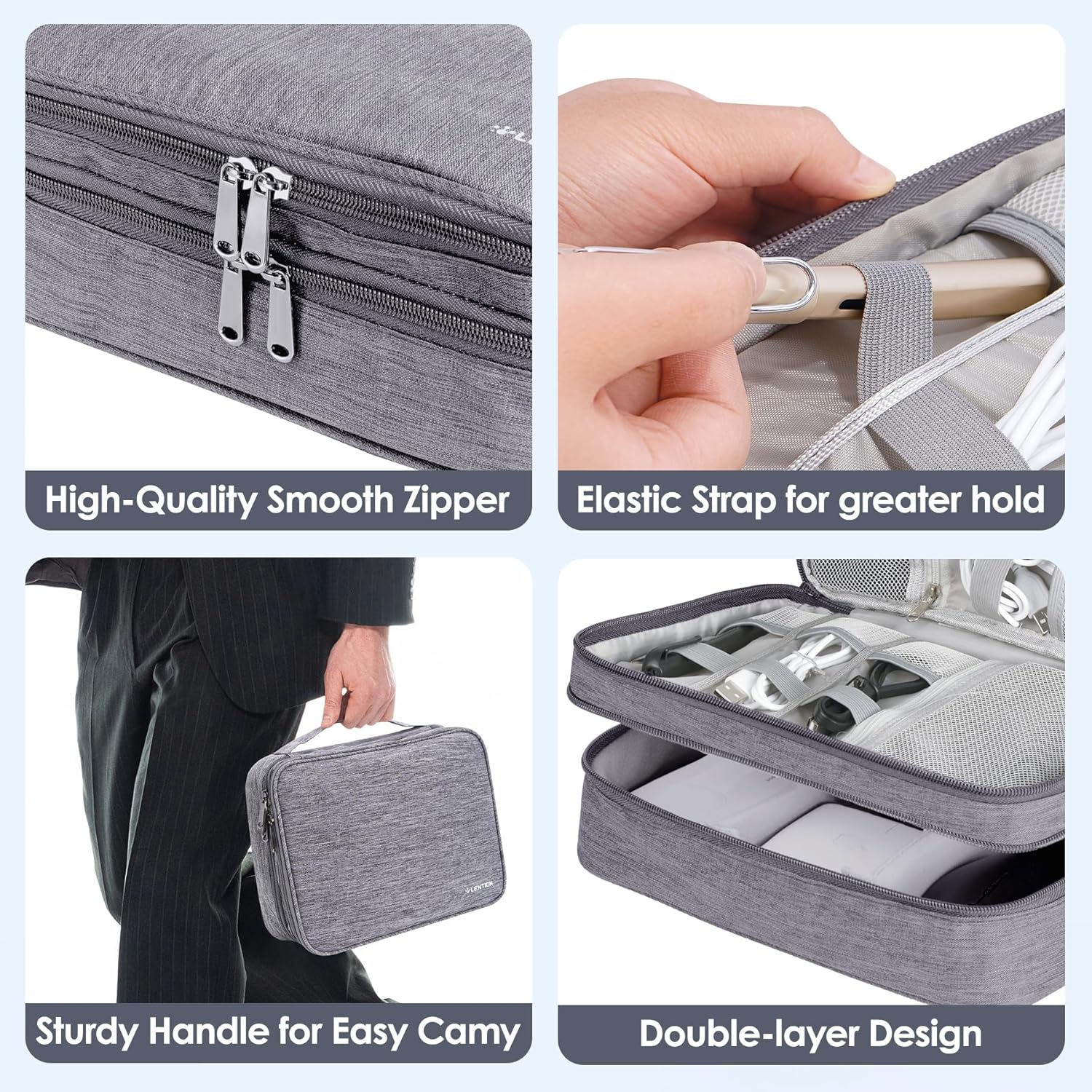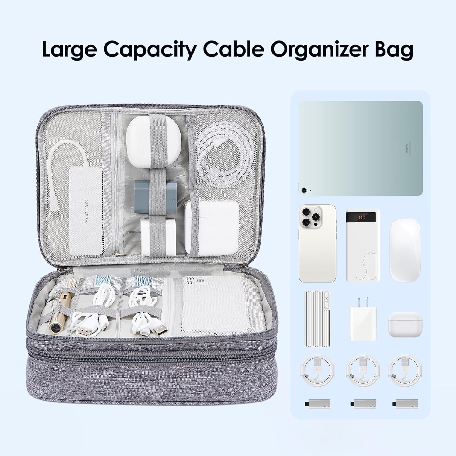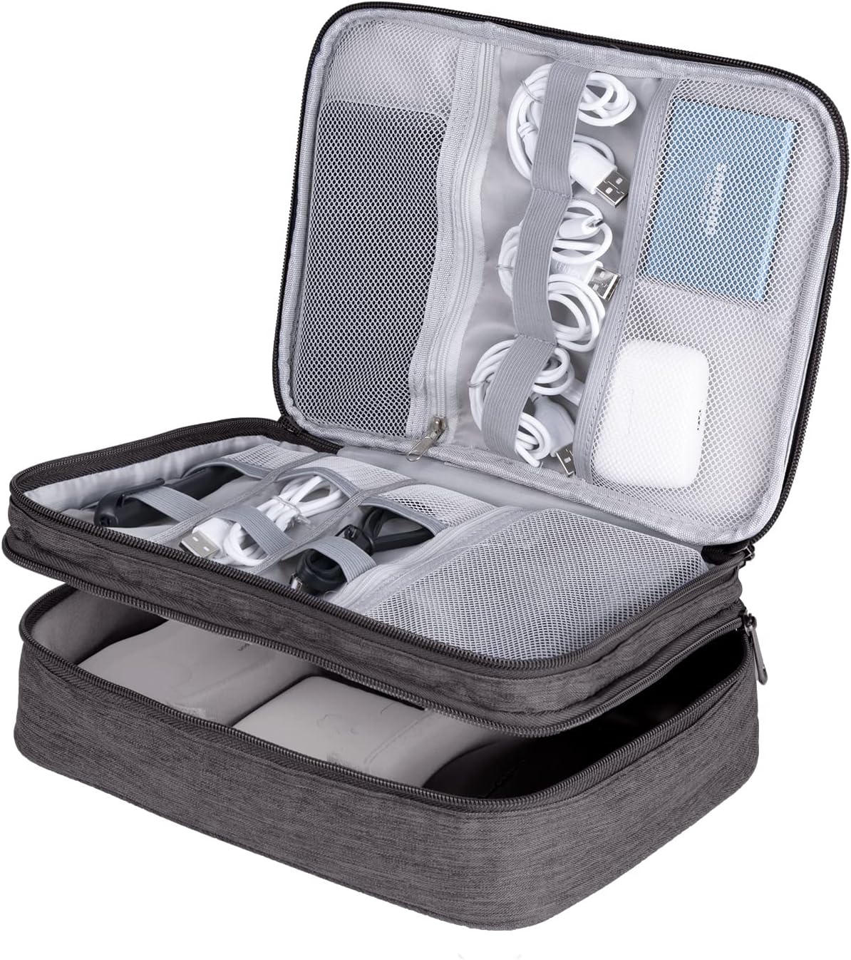 LENTION Cable Electronics Organizer Bag Pouch, Travel Accessories Carry Case Waterproof Double Layers All-in-One Storage Bag Carrying for Cord, Charger, Power Bank, Earphone Grey