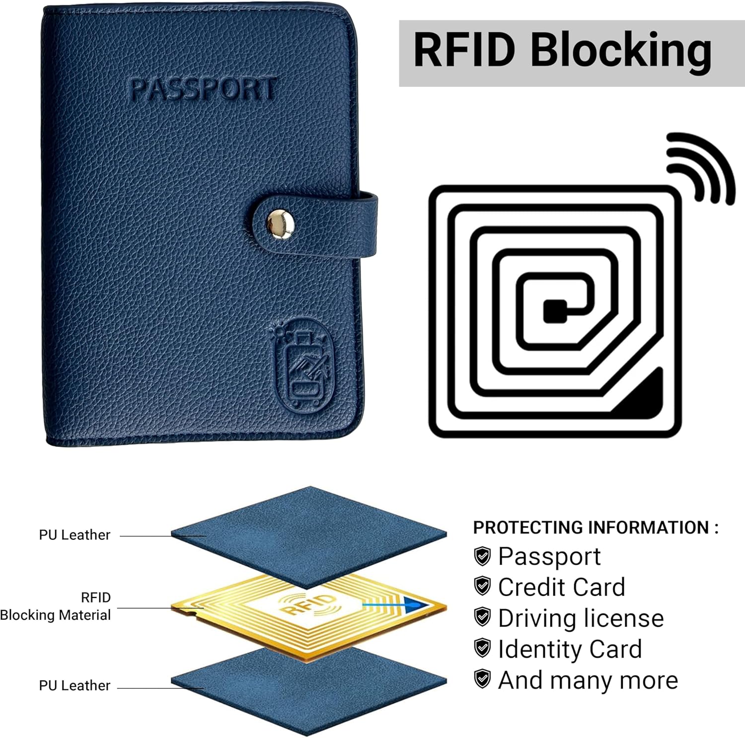RFID Blocking and AirTag Slot — Protect your ID, credit, and debit card information with RFID blocking technology . Never lose your documents with a convenient AirTag slot built into the passport case (AirTag sold separately)