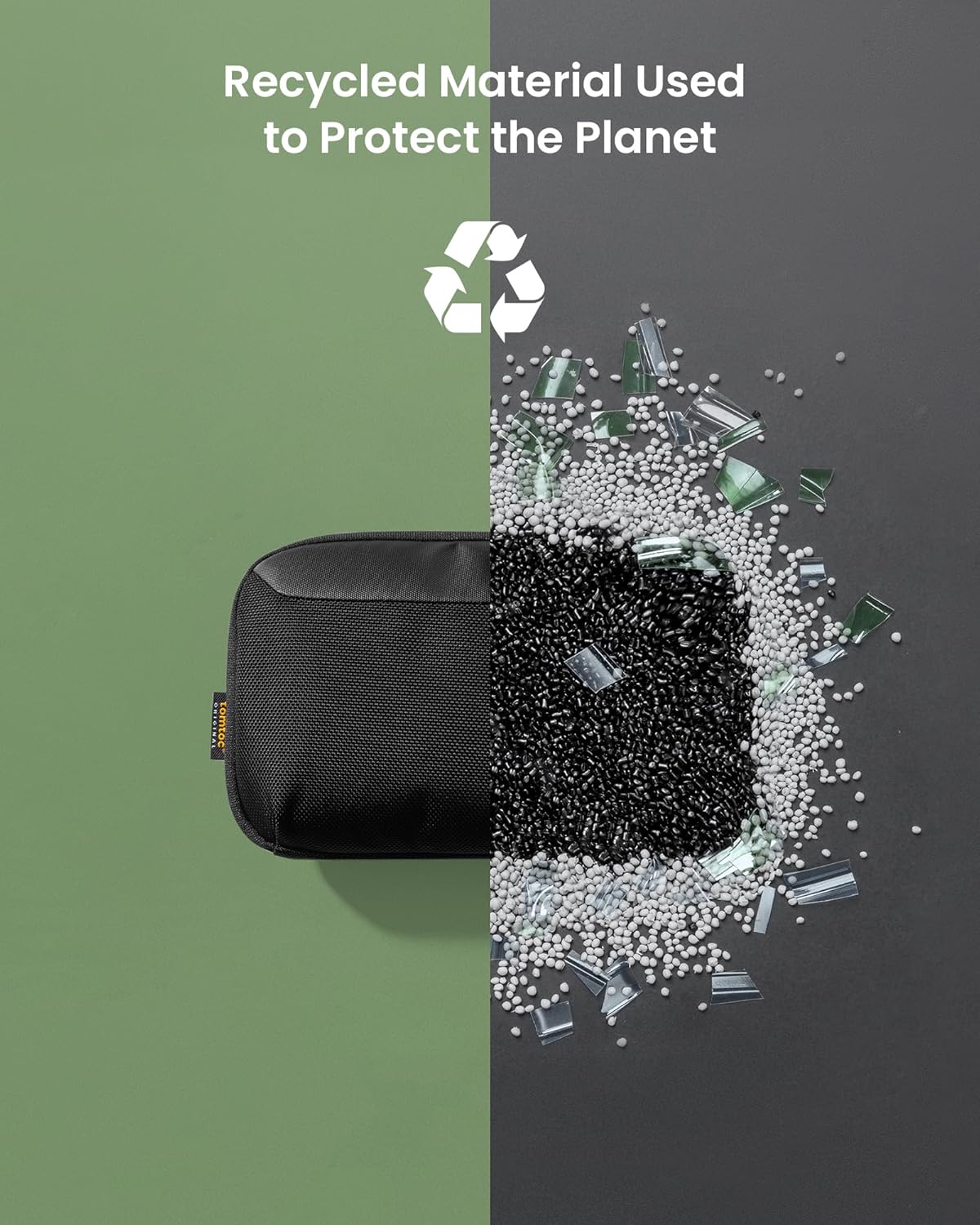 Quality Material: Made of water-repellent sustainable polyester fabric, durable and sturdy enough to protect your tech accessories from water-splashing. A central wrap-around YKK Aquaguard zipper glides smoothly for a superb quality experience