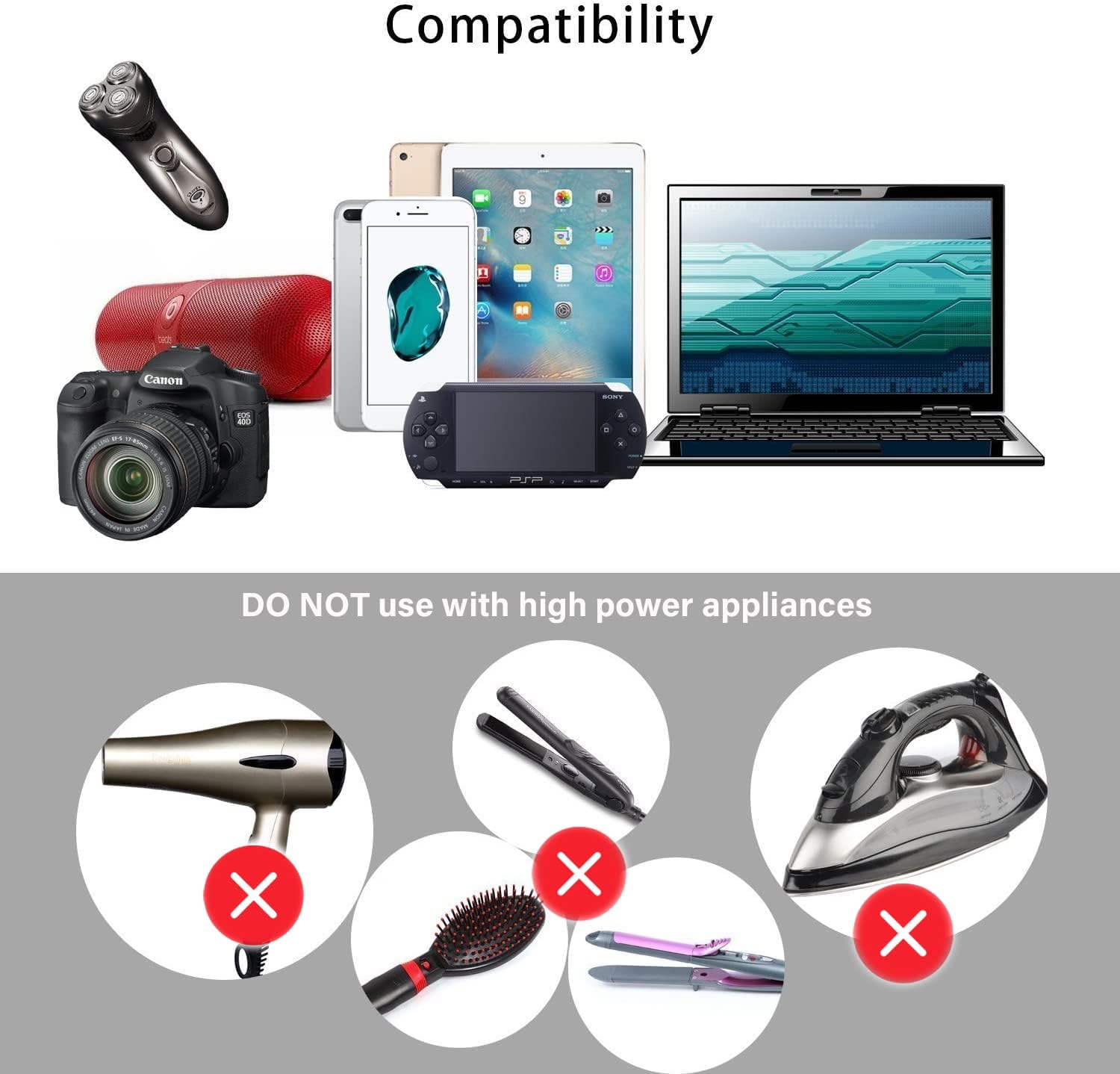 This international adapter does NOT convert voltage(AC-AC). Please make sure your devices are within rated wattage and current to avoid damage(especially hair clipper, flat iron, straightener, electric razor, etc… )