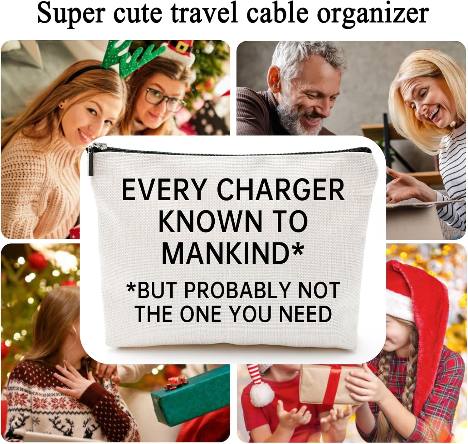 【Hilarious Design】Bored with your black standard cable organizer bag? This cute bag is double-side printed with funny saying “EVERY CHARGER KNOWN TO MANKIND, BUT PROBABLY NOT THE ONE YOU NEED’’, a fun way to make people smile when they are organizing the cables. Super cute gift to dad, mom, papa, grandma, gigi, nana, uncle, auntie, daughter, sister, cousin, best friends, boss, employee, teacher, nurse, wife, etc.